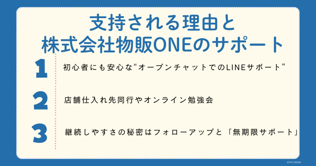 - 受講生に支持される理由と株式会社物販ONEのサポート体制