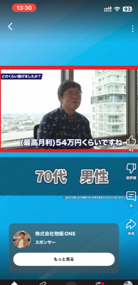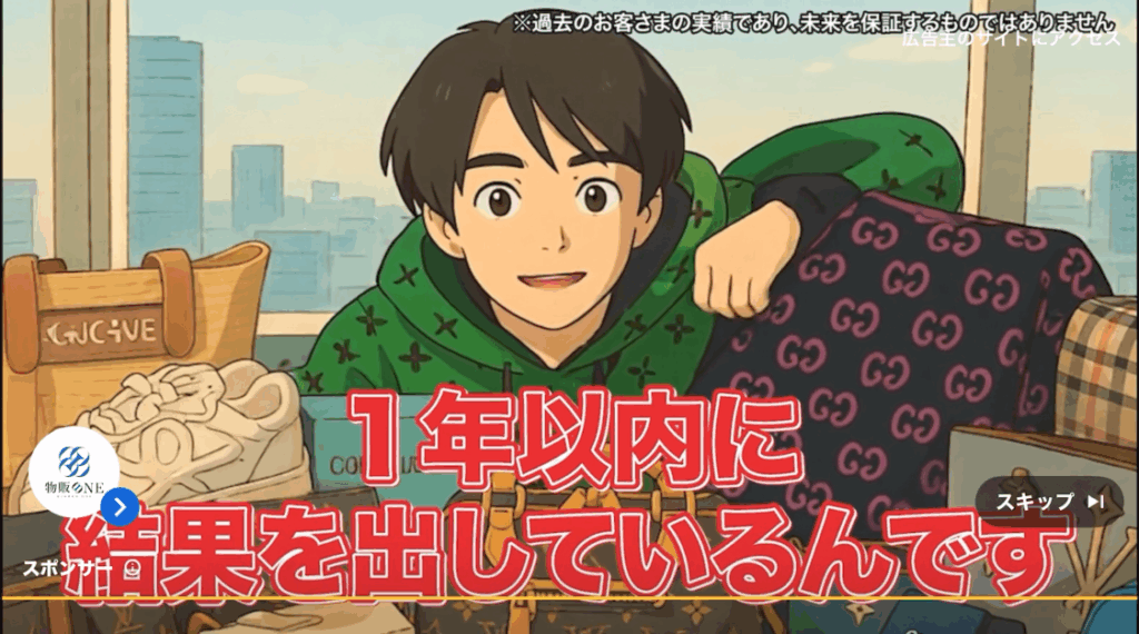 株式会社物販ONEの広告は、SNSやYouTubeを中心にインパクトのある表現が多く、「1年以内に結果が出る」「最高で月利54万円」などのコピーが目立ちます。