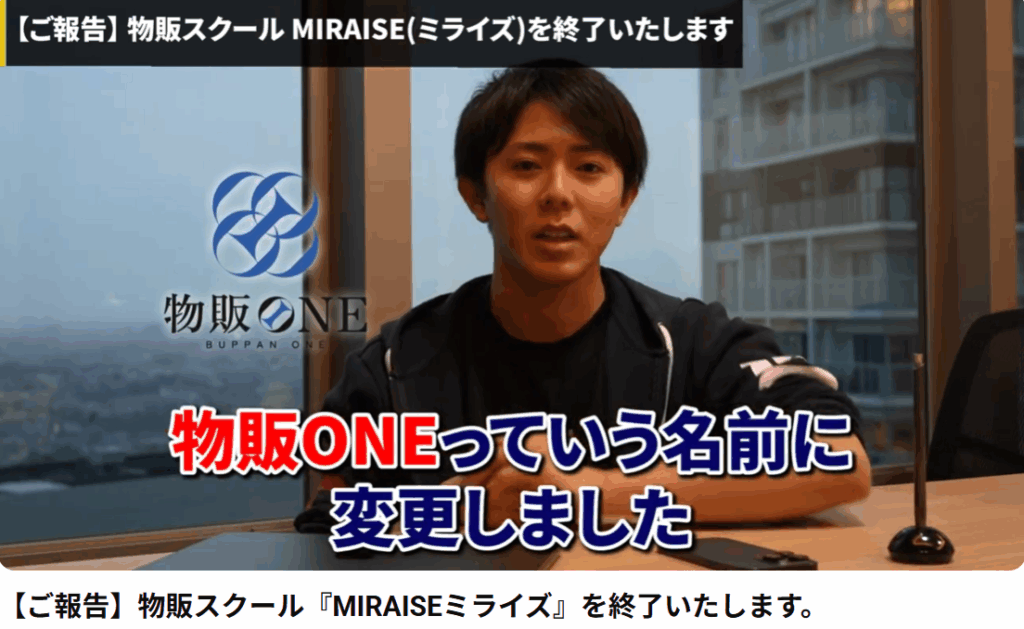 その後、スクール名MIRAISEを経て、現在の物販ONEにブランドを統一しています。
