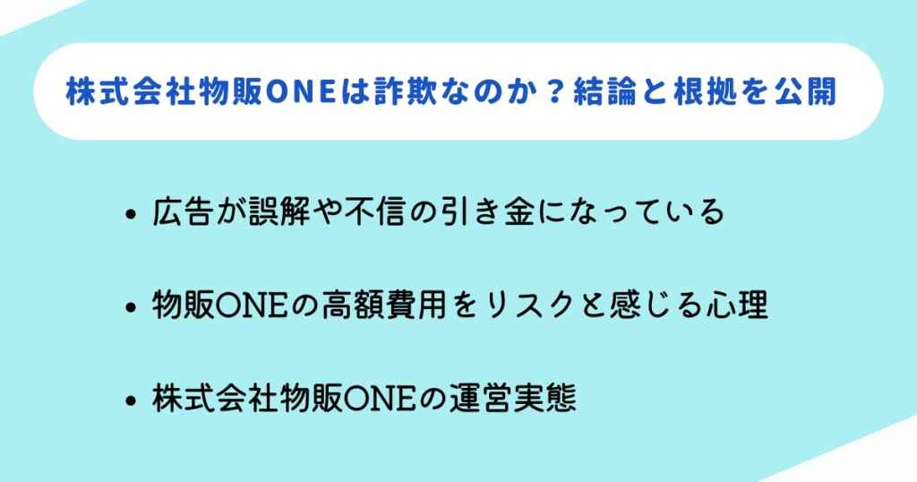 - 「株式会社物販ONEは詐欺なのか」を根拠で判断したい