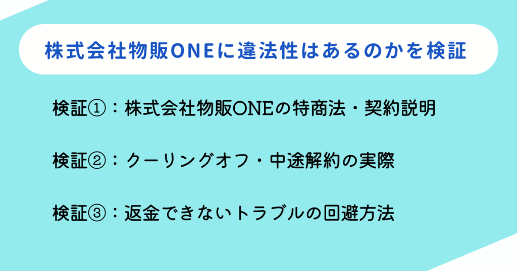 - 検証①:株式会社物販ONEの特商法・契約説明