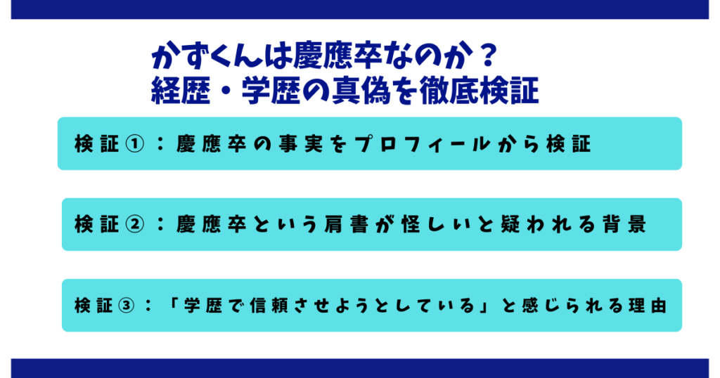 SNSやブログ記事の中には、「かずくんは本当に慶應卒なの?」「学歴詐称じゃないの?」といった声が散見されます。