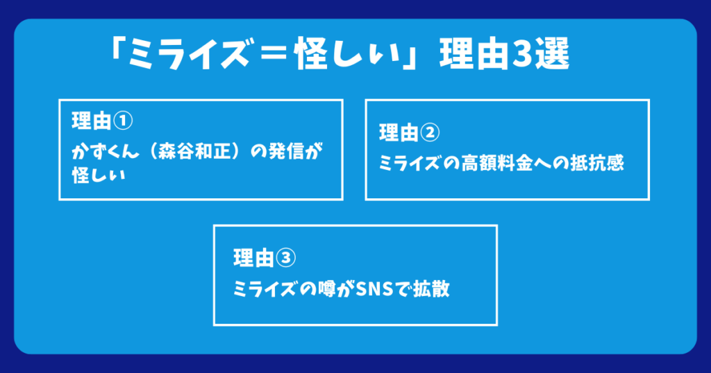 この記事では、ミライズが「怪しい」と言われるようになった背景を整理し、代表的な3つの理由をもとに、実態を客観的に解説していきます。