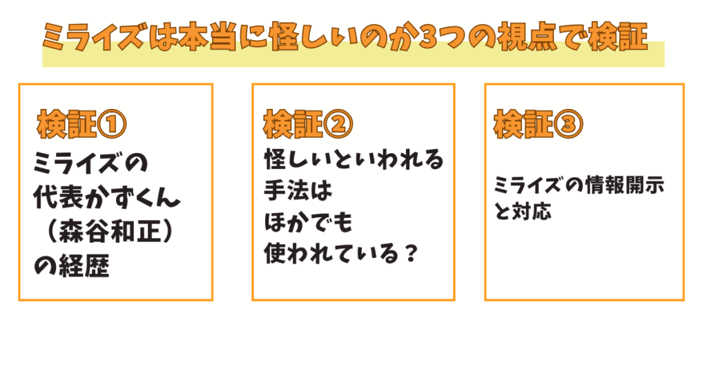 ミライズ(現・物販ONE)について、ここでは噂や先入観だけに左右されず、冷静に判断するための3つの視点からミライズを検証していきます。